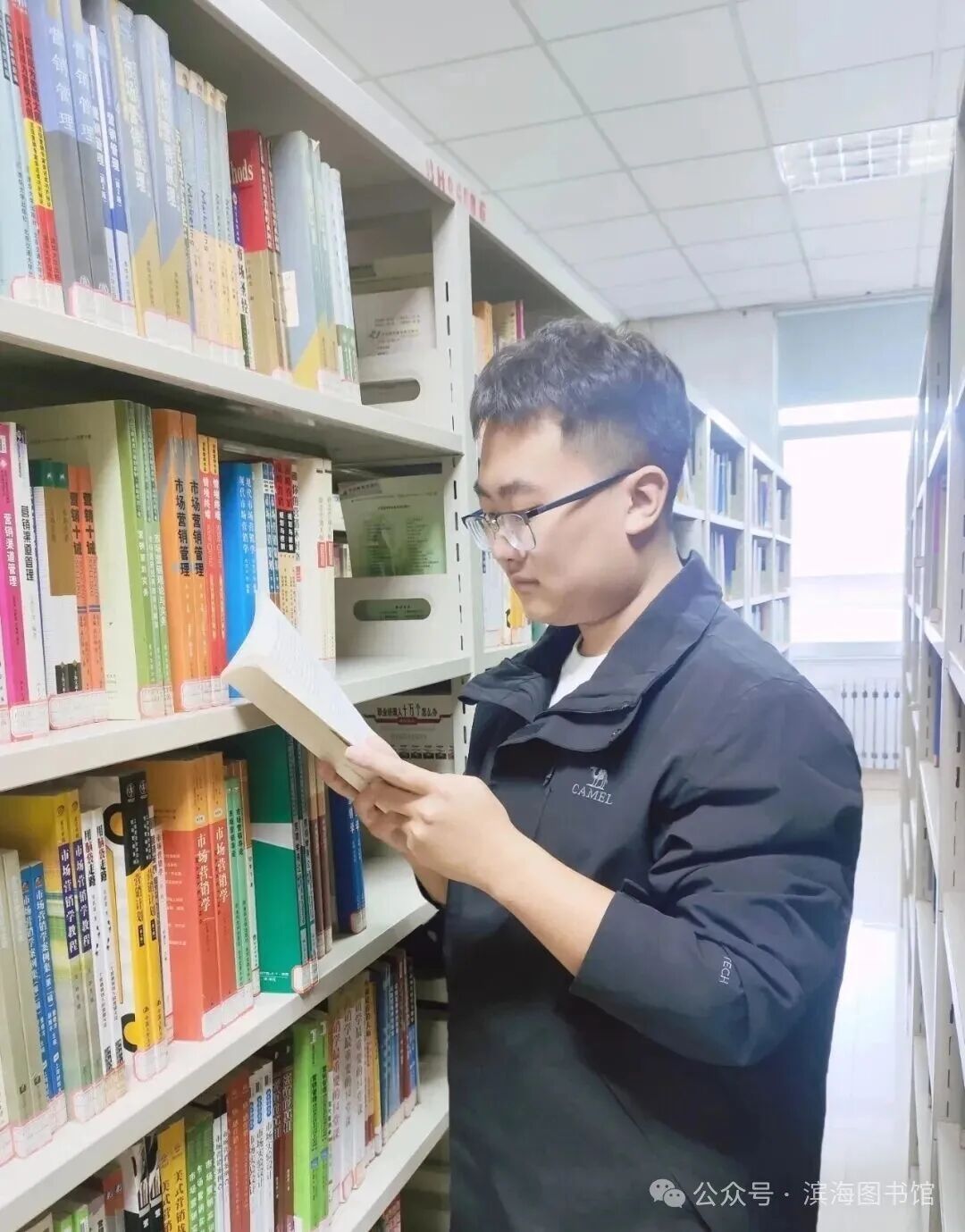 在图书馆靠窗的位置